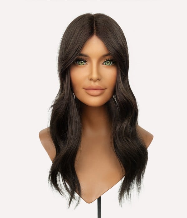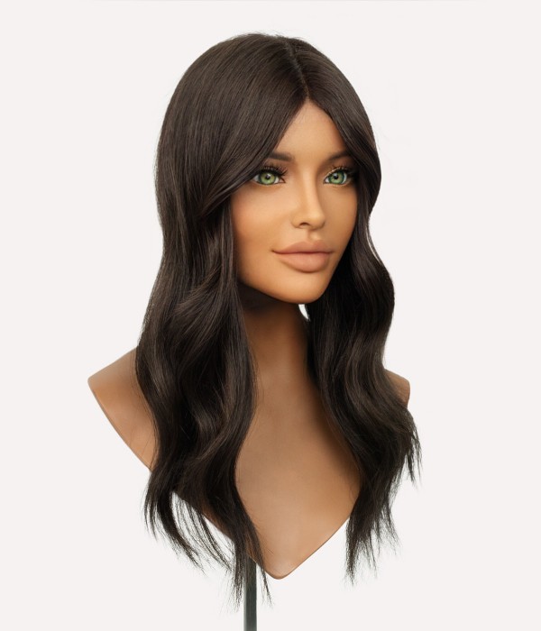 and a realistic scalp effect. The monofilament base allows flexible parting and