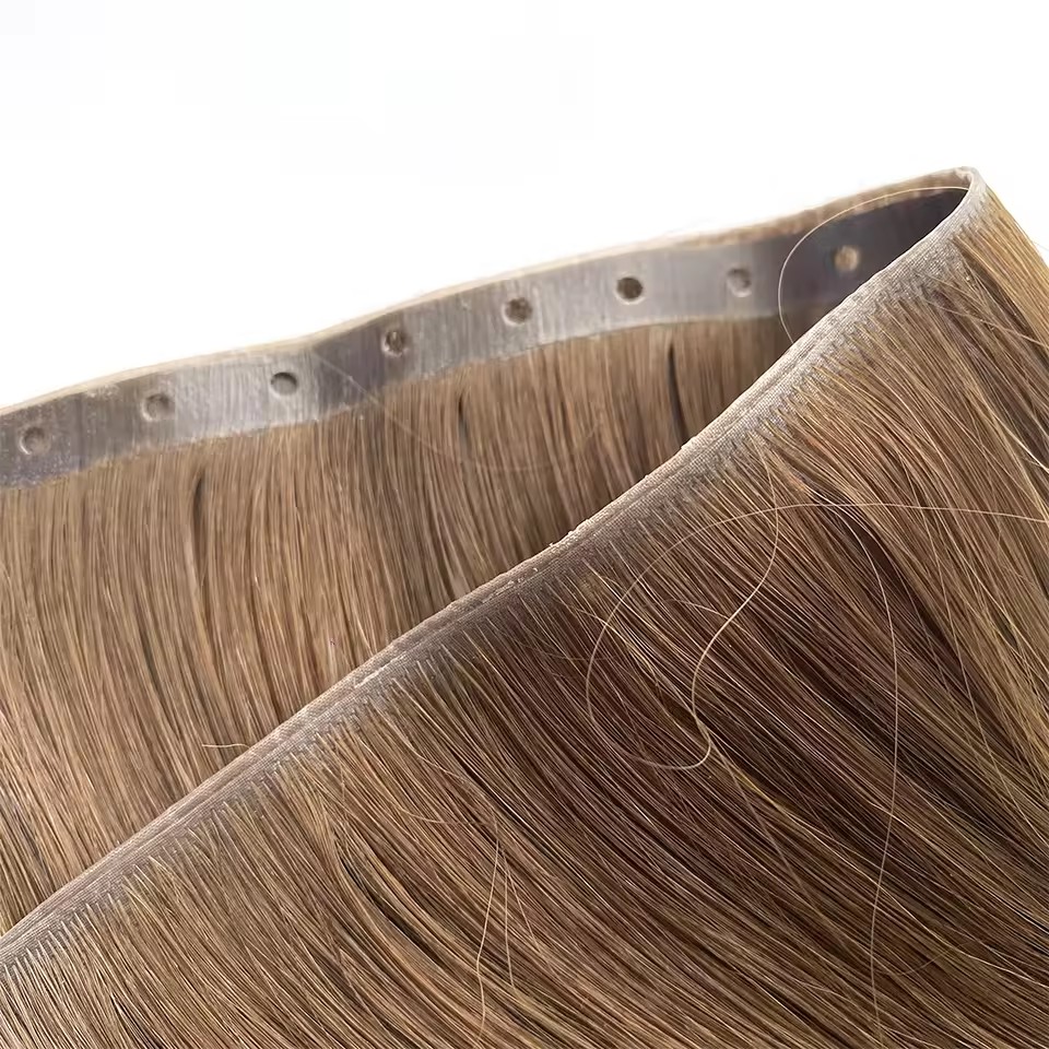 Butterfly PU Injected Human Hair Weft with Hole at One Side – Brown Color Russian Hair