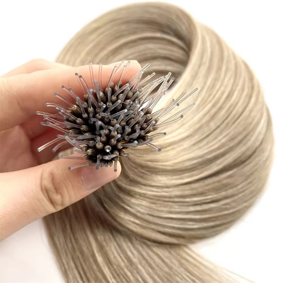 The flexible nano hair extensions are designed for professional salons and hair specialists who require discreet installation, lightweight comfort, and long-term wear performance. The nano tip system allows precise application while maintaining a natural, invisible result.