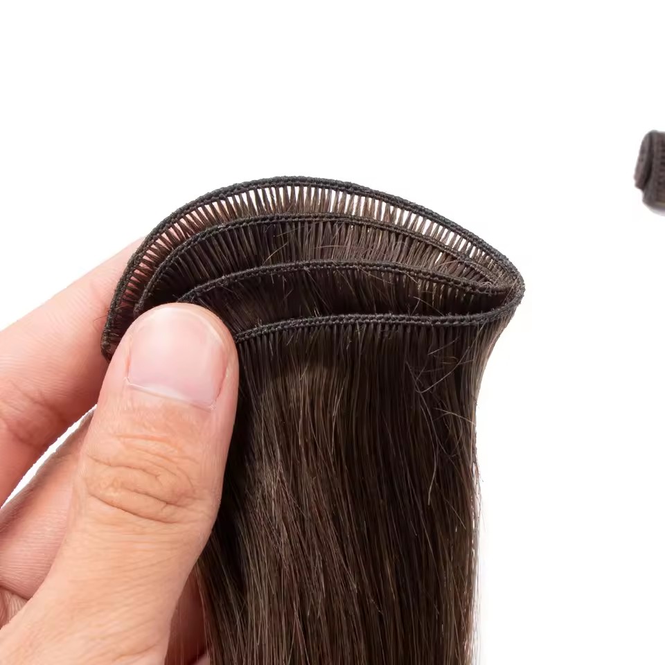 Compared with machine-made wefts, hand-tied wefts are significantly thinner and more flexible, making them ideal for premium salon installations where natural movement and invisibility are essential.