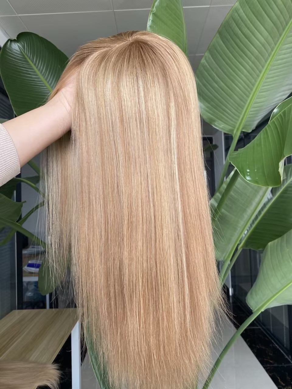 - Blonde shade, ash-root depth, and wave pattern adjustment