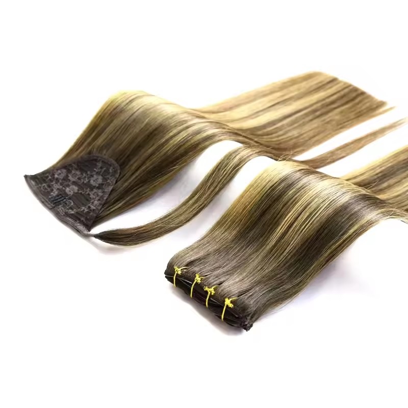 Ponytail Hair Wrap Around with Comb – Highlight with Dark Roots Virgin Hair Wholesale