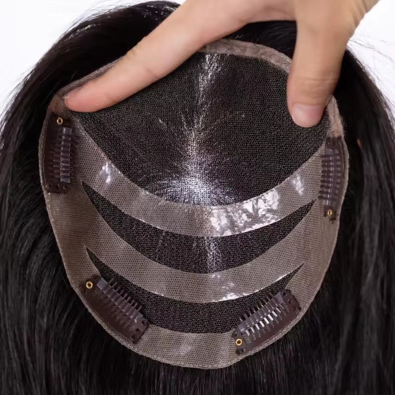 This Swiss lace base hair topper features a newly developed structure combining a lightweight lace foundation with a PU reinforced perimeter, designed for improved durability, secure attachment, and natural appearance. As a professional human hair factory and OEM topper manufacturer, we supply this model for hair brands, wholesalers, and professional salons worldwide.